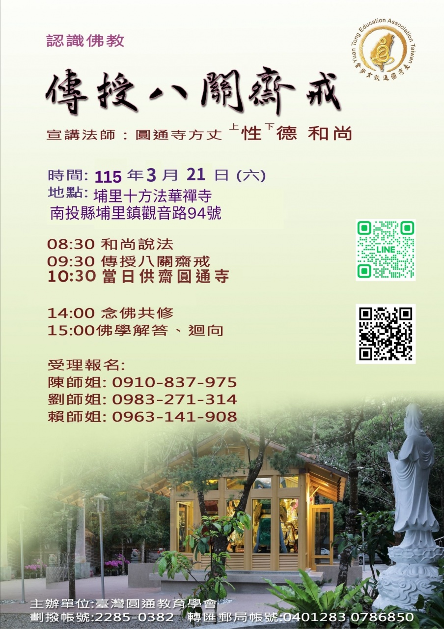 地點:埔里十方法華禪寺 ( 南投縣埔里鎮觀音路94號 )